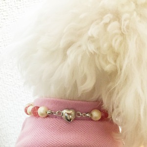 クラッククリスタルとコットンパールのネックレスです。着脱がラクなマグネット留め具はハート型を使い、どの角度からもわんちゃんの可愛さを引き立てたせます♡ お買い求めの際は、わんちゃんの首周りのサイズをご確認くださいませ。 (内周23㎝)